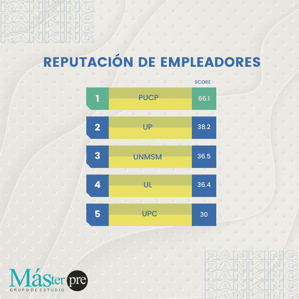 Está métrica de Reputación de Empleadores se basa en más de 75,000 respuestas a la Encuesta de Empleadores de QS, en ella se pide a los empleadores que identifiquen aquellas instituciones de las que obtienen a los graduados más competentes, innovadores y efectivos.